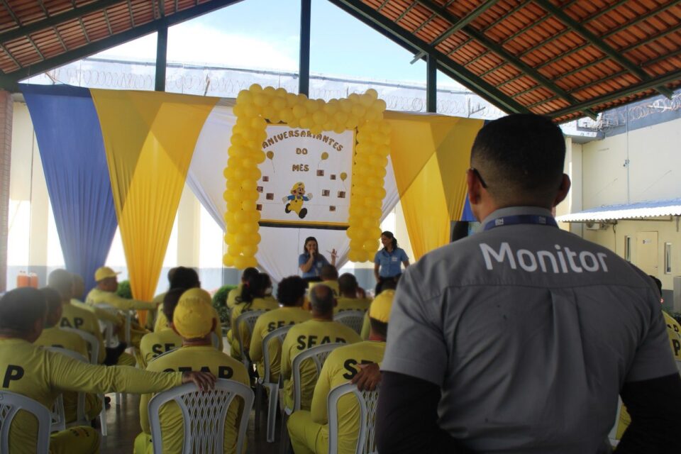 A Secretaria de Estado de Administração Penitenciária (SEAP), em parceria com a RH Multi, realizou na Unidade Prisional do Puraquequara (UPP), a atividade em homenagem aos aniversariantes do mês de Maio, destinada aos reeducandos trabalhadores das galerias 01 e 02.
